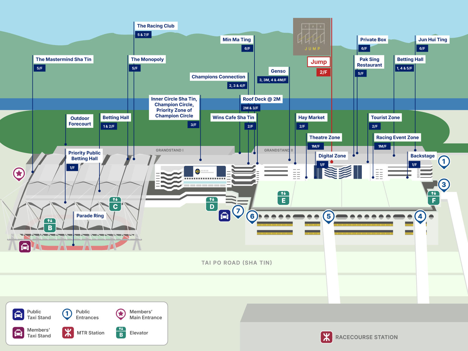 'Jump' is the critical starting moment in every race - a name adopted for the new stylish Café tailored for the new generation racing fans in Sha Tin Racecourse. With various interactive facilities - from energetic Hong Kong horse racing animation, digital gear riding game to Gear VR 360° virtual horse stable tours, customers can enjoy exceptional high technology racing experience.
